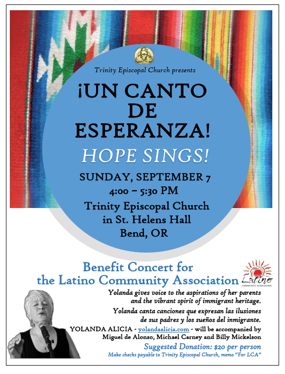 SUNDAY, SEPTEMBER 7 4:00 – 5:30 PM Trinity Episcopal Church in St. Helens Hall Bend, OR